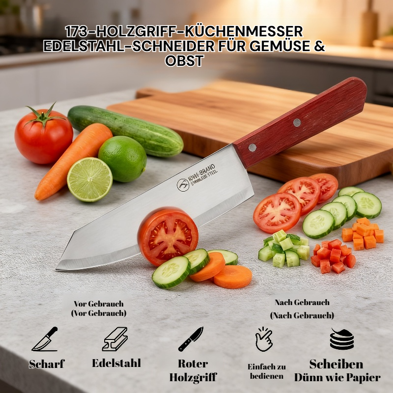 ● Hochwertiges Schneidemesser aus Edelstahl, das mühelos Gemüse und Obst schneidet sowie schält und dabei langlebige Schärfe garantiert. ● Ergonomischer Griff sorgt für sicheren Halt und komfortables Arbeiten, selbst bei längerer Küchenarbeit oder feuchten Händen. ● Rostfreies und pflegeleichtes Material, das sich einfach reinigen lässt und somit hygienisches Arbeiten in Ihrer Küche ermöglicht. ● Vielseitig einsetzbar zum präzisen Schneiden, Schälen und Zubereiten verschiedenster Obst- und Gemüsesorten – ein echtes Must-have für jede Küche.